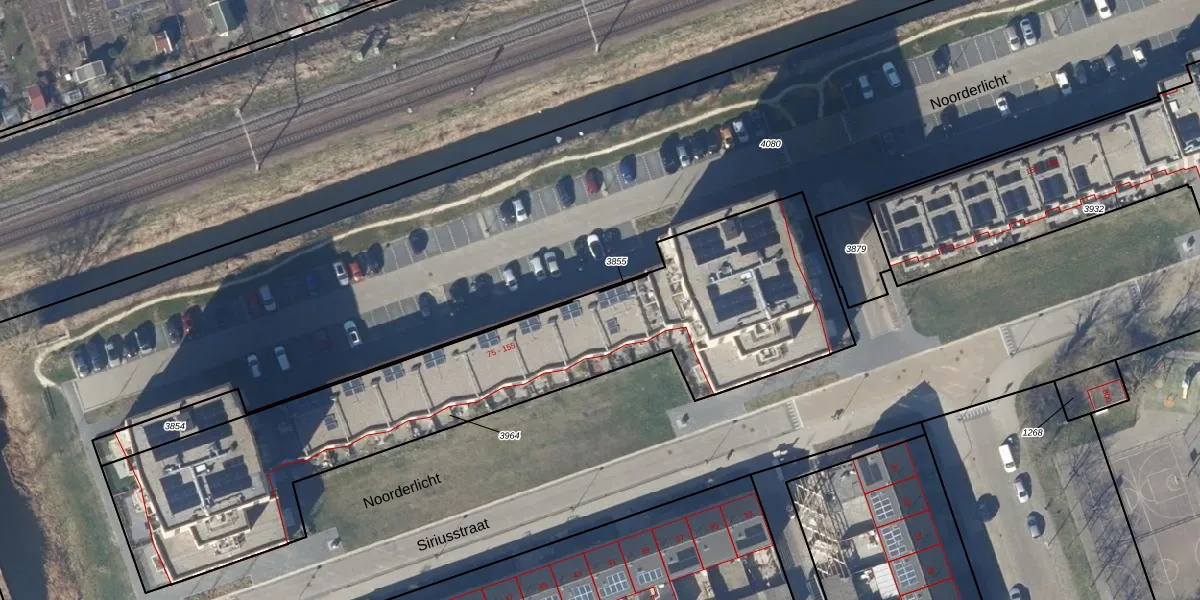 Het perceel waarop Noorderlicht 119 staat heeft een oppervlakte van 2306 m². Dit is een zeer groot perceel. De perceeloppervlakte wordt geregistreerd door het Kadaster. Gedetailleerde informatie over de maten van dit perceel kunt u vinden in het rapport Kadastrale kaart met maatvoering van Noorderlicht 119.