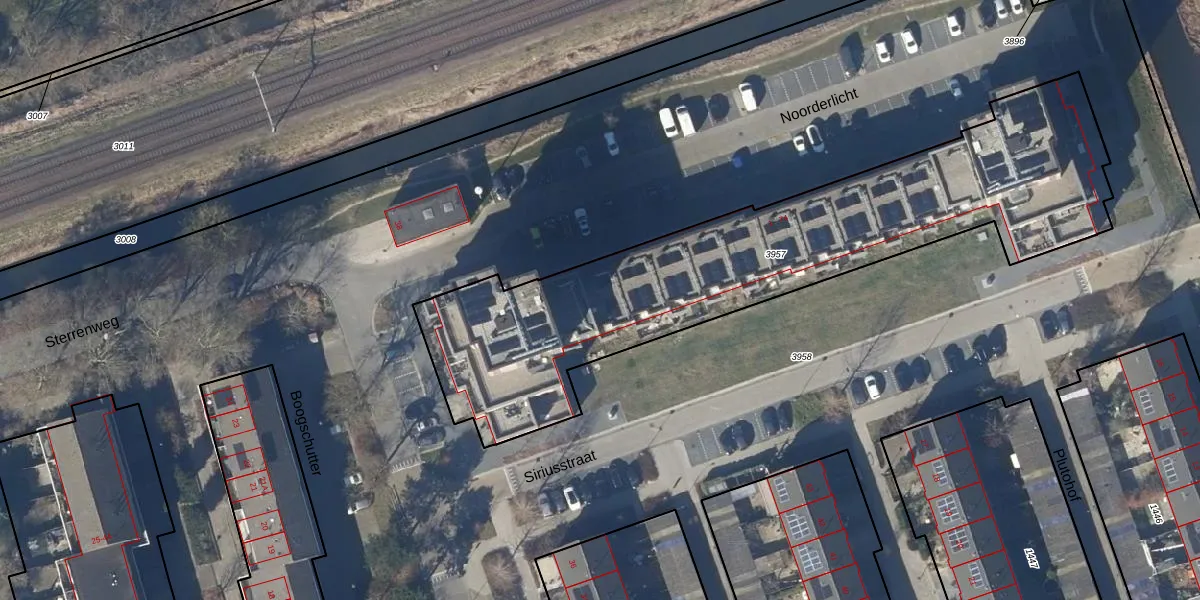 Het perceel waarop Noorderlicht 12 staat heeft een oppervlakte van 2209 m². Dit is een zeer groot perceel. De perceeloppervlakte wordt geregistreerd door het Kadaster. Gedetailleerde informatie over de maten van dit perceel kunt u vinden in het rapport Kadastrale kaart met maatvoering van Noorderlicht 12.