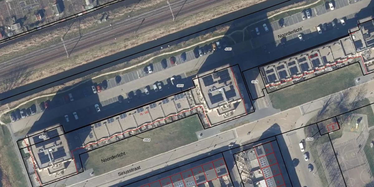 Het perceel waarop Noorderlicht 121 staat heeft een oppervlakte van 2306 m². Dit is een zeer groot perceel. De perceeloppervlakte wordt geregistreerd door het Kadaster. Gedetailleerde informatie over de maten van dit perceel kunt u vinden in het rapport Kadastrale kaart met maatvoering van Noorderlicht 121.