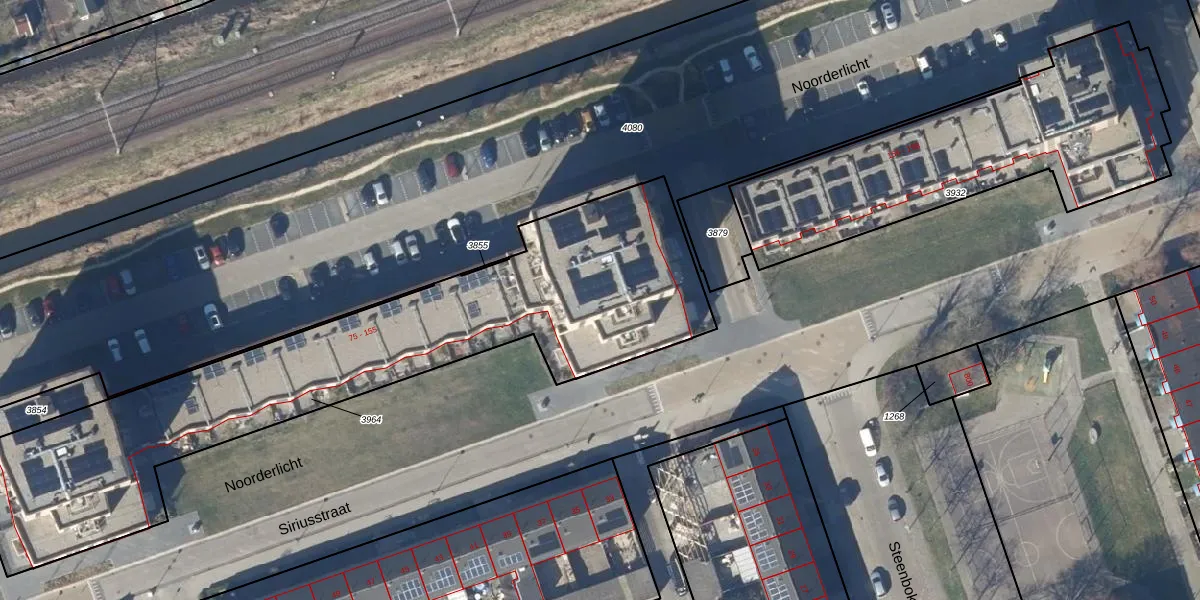 Het perceel waarop Noorderlicht 143 staat heeft een oppervlakte van 2306 m². Dit is een zeer groot perceel. De perceeloppervlakte wordt geregistreerd door het Kadaster. Gedetailleerde informatie over de maten van dit perceel kunt u vinden in het rapport Kadastrale kaart met maatvoering van Noorderlicht 143.