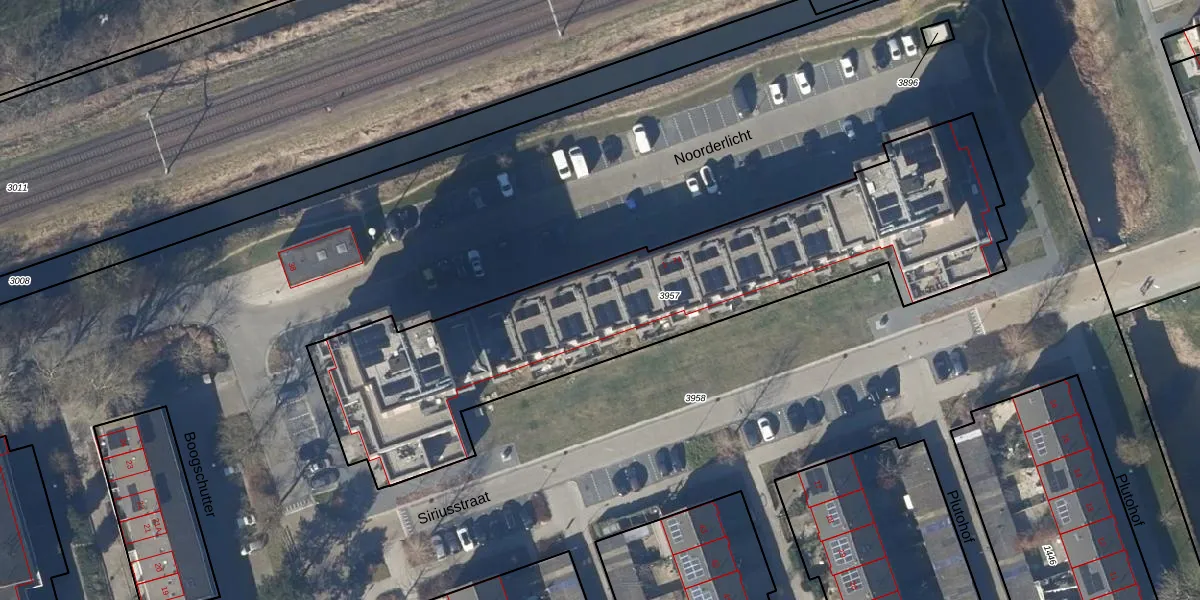 Het perceel waarop Noorderlicht 15 staat heeft een oppervlakte van 2209 m². Dit is een zeer groot perceel. De perceeloppervlakte wordt geregistreerd door het Kadaster. Gedetailleerde informatie over de maten van dit perceel kunt u vinden in het rapport Kadastrale kaart met maatvoering van Noorderlicht 15.