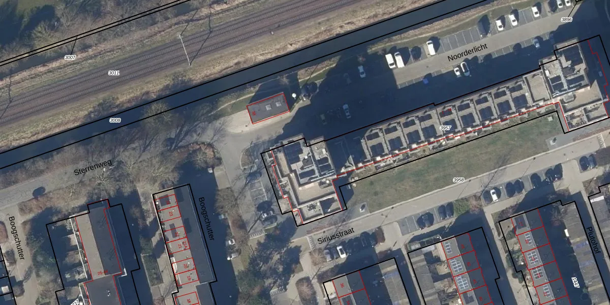Het perceel waarop Noorderlicht 17 staat heeft een oppervlakte van 2209 m². Dit is een zeer groot perceel. De perceeloppervlakte wordt geregistreerd door het Kadaster. Gedetailleerde informatie over de maten van dit perceel kunt u vinden in het rapport Kadastrale kaart met maatvoering van Noorderlicht 17.