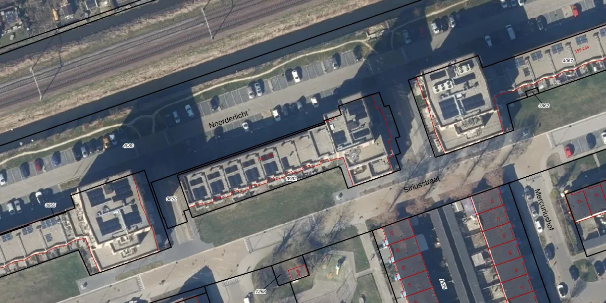 Het perceel waarop Noorderlicht 179 staat heeft een oppervlakte van 1300 m². Dit is een zeer groot perceel. De perceeloppervlakte wordt geregistreerd door het Kadaster. Gedetailleerde informatie over de maten van dit perceel kunt u vinden in het rapport Kadastrale kaart met maatvoering van Noorderlicht 179.