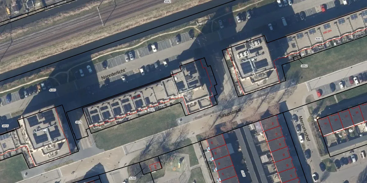 Het perceel waarop Noorderlicht 190 staat heeft een oppervlakte van 1300 m². Dit is een zeer groot perceel. De perceeloppervlakte wordt geregistreerd door het Kadaster. Gedetailleerde informatie over de maten van dit perceel kunt u vinden in het rapport Kadastrale kaart met maatvoering van Noorderlicht 190.