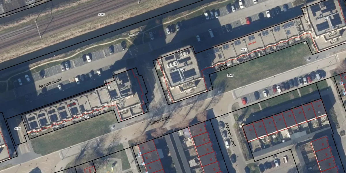 Het perceel waarop Noorderlicht 218 staat heeft een oppervlakte van 2324 m². Dit is een zeer groot perceel. De perceeloppervlakte wordt geregistreerd door het Kadaster. Gedetailleerde informatie over de maten van dit perceel kunt u vinden in het rapport Kadastrale kaart met maatvoering van Noorderlicht 218.