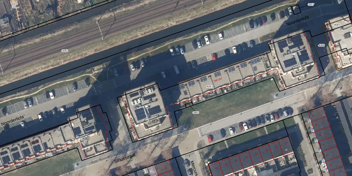 Het perceel waarop Noorderlicht 224 staat heeft een oppervlakte van 2324 m². Dit is een zeer groot perceel. De perceeloppervlakte wordt geregistreerd door het Kadaster. Gedetailleerde informatie over de maten van dit perceel kunt u vinden in het rapport Kadastrale kaart met maatvoering van Noorderlicht 224.