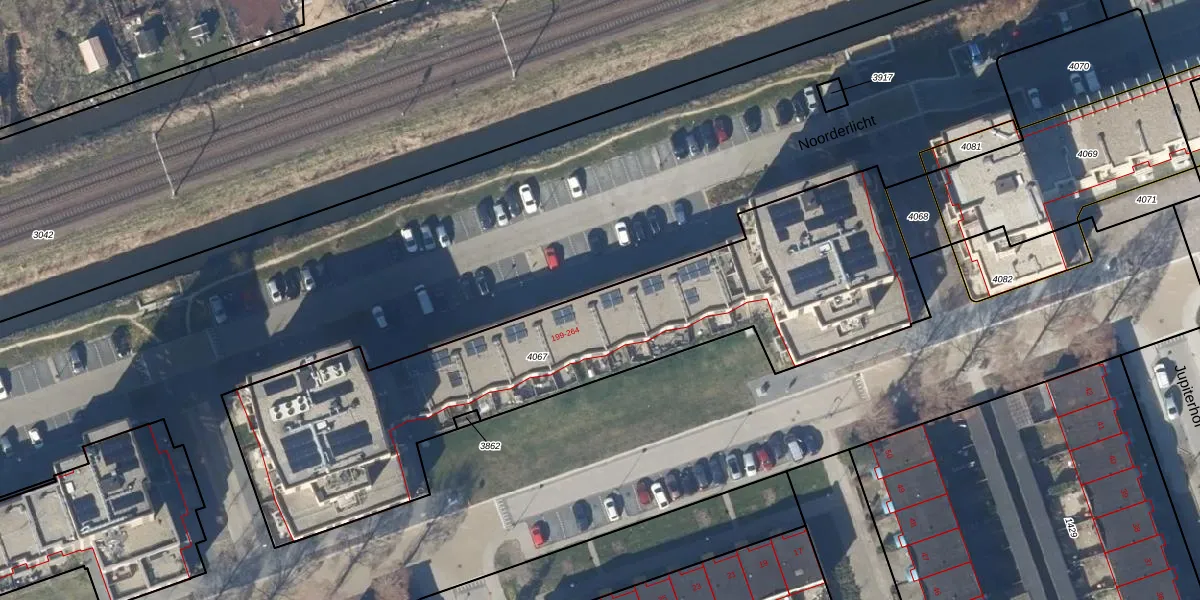 Het perceel waarop Noorderlicht 232 staat heeft een oppervlakte van 2324 m². Dit is een zeer groot perceel. De perceeloppervlakte wordt geregistreerd door het Kadaster. Gedetailleerde informatie over de maten van dit perceel kunt u vinden in het rapport Kadastrale kaart met maatvoering van Noorderlicht 232.