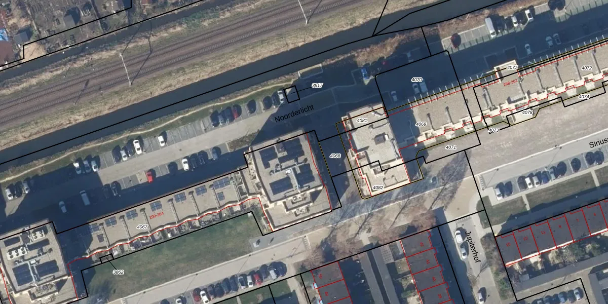 Het perceel waarop Noorderlicht 253 staat heeft een oppervlakte van 2324 m². Dit is een zeer groot perceel. De perceeloppervlakte wordt geregistreerd door het Kadaster. Gedetailleerde informatie over de maten van dit perceel kunt u vinden in het rapport Kadastrale kaart met maatvoering van Noorderlicht 253.