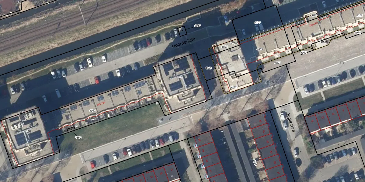 Het perceel waarop Noorderlicht 260 staat heeft een oppervlakte van 2324 m². Dit is een zeer groot perceel. De perceeloppervlakte wordt geregistreerd door het Kadaster. Gedetailleerde informatie over de maten van dit perceel kunt u vinden in het rapport Kadastrale kaart met maatvoering van Noorderlicht 260.