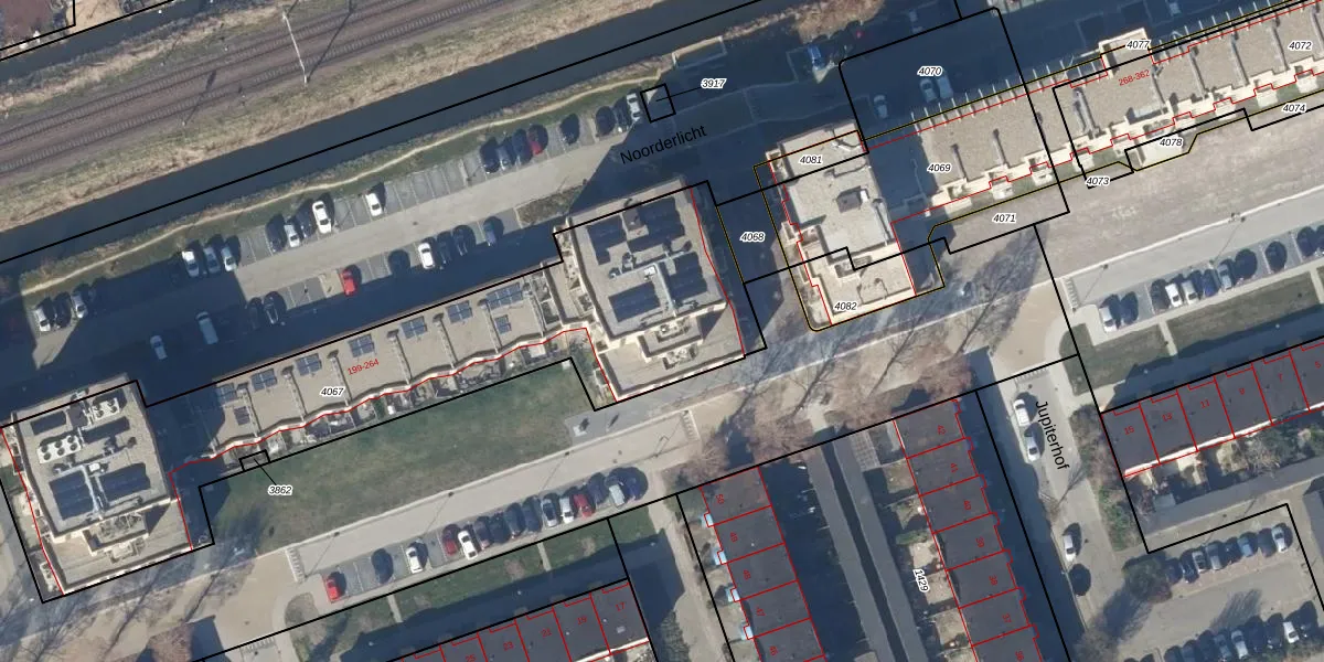 Het perceel waarop Noorderlicht 265 staat heeft een oppervlakte van 2324 m². Dit is een zeer groot perceel. De perceeloppervlakte wordt geregistreerd door het Kadaster. Gedetailleerde informatie over de maten van dit perceel kunt u vinden in het rapport Kadastrale kaart met maatvoering van Noorderlicht 265.