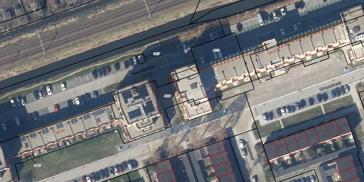Het perceel waarop Noorderlicht 269 staat heeft een oppervlakte van 655 m². Dit is een groot perceel. De perceeloppervlakte wordt geregistreerd door het Kadaster. Gedetailleerde informatie over de maten van dit perceel kunt u vinden in het rapport Kadastrale kaart met maatvoering van Noorderlicht 269.