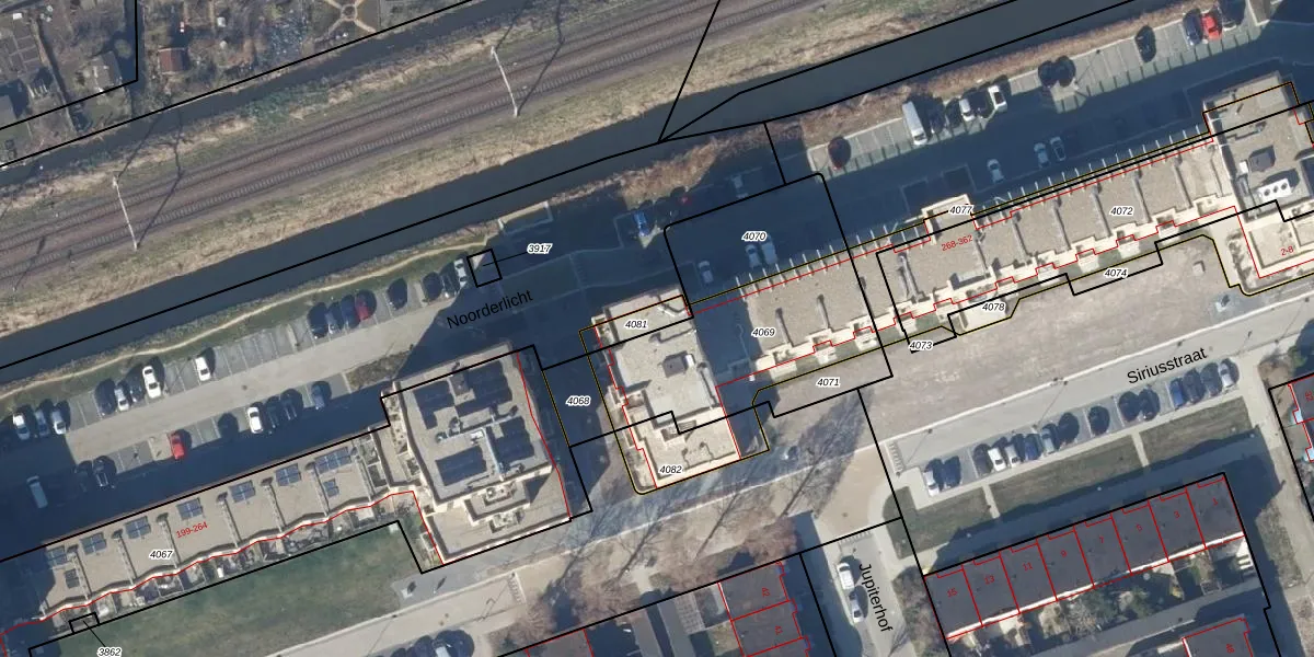 Het perceel waarop Noorderlicht 290 staat heeft een oppervlakte van 63 m². Dit is een klein perceel. De perceeloppervlakte wordt geregistreerd door het Kadaster. Gedetailleerde informatie over de maten van dit perceel kunt u vinden in het rapport Kadastrale kaart met maatvoering van Noorderlicht 290.