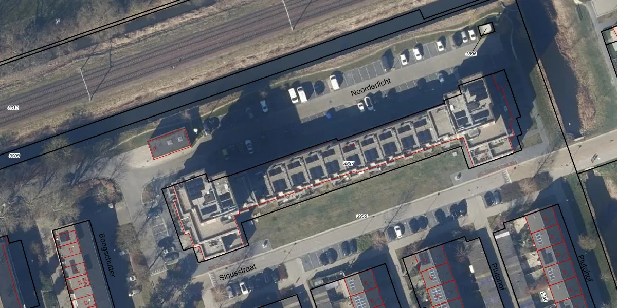 Het perceel waarop Noorderlicht 34 staat heeft een oppervlakte van 2209 m². Dit is een zeer groot perceel. De perceeloppervlakte wordt geregistreerd door het Kadaster. Gedetailleerde informatie over de maten van dit perceel kunt u vinden in het rapport Kadastrale kaart met maatvoering van Noorderlicht 34.