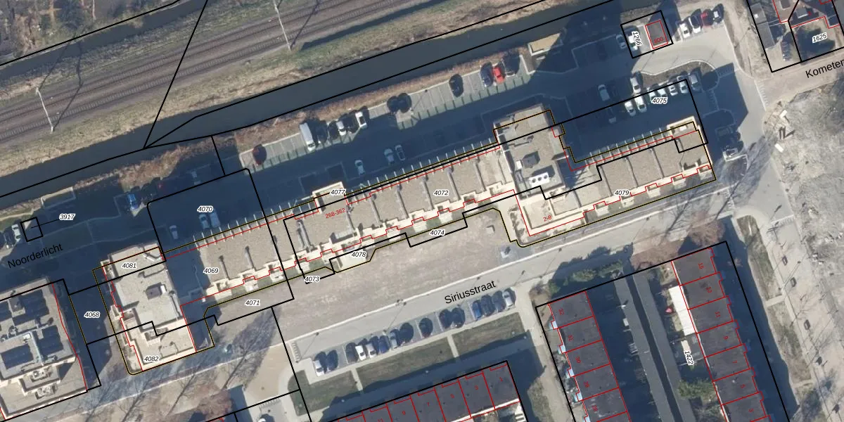 Het perceel waarop Noorderlicht 348 staat heeft een oppervlakte van 1037 m². Dit is een zeer groot perceel. De perceeloppervlakte wordt geregistreerd door het Kadaster. Gedetailleerde informatie over de maten van dit perceel kunt u vinden in het rapport Kadastrale kaart met maatvoering van Noorderlicht 348.