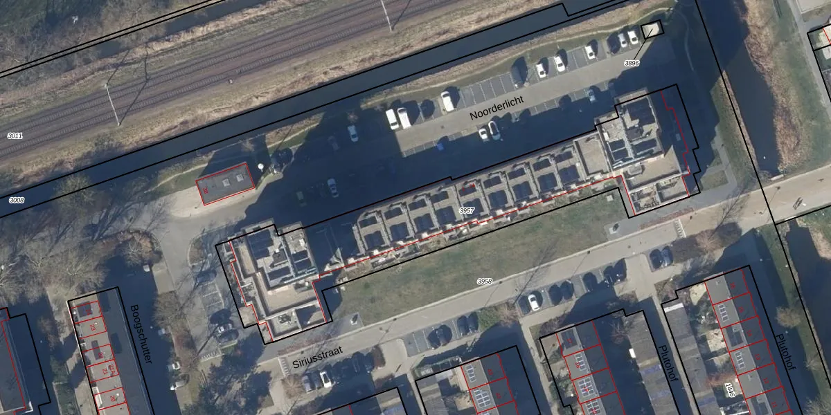 Het perceel waarop Noorderlicht 35 staat heeft een oppervlakte van 2209 m². Dit is een zeer groot perceel. De perceeloppervlakte wordt geregistreerd door het Kadaster. Gedetailleerde informatie over de maten van dit perceel kunt u vinden in het rapport Kadastrale kaart met maatvoering van Noorderlicht 35.