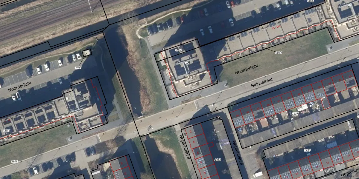 Het perceel waarop Noorderlicht 81 staat heeft een oppervlakte van 2306 m². Dit is een zeer groot perceel. De perceeloppervlakte wordt geregistreerd door het Kadaster. Gedetailleerde informatie over de maten van dit perceel kunt u vinden in het rapport Kadastrale kaart met maatvoering van Noorderlicht 81.