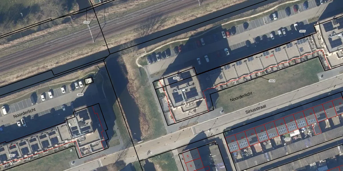 Het perceel waarop Noorderlicht 88 staat heeft een oppervlakte van 2306 m². Dit is een zeer groot perceel. De perceeloppervlakte wordt geregistreerd door het Kadaster. Gedetailleerde informatie over de maten van dit perceel kunt u vinden in het rapport Kadastrale kaart met maatvoering van Noorderlicht 88.