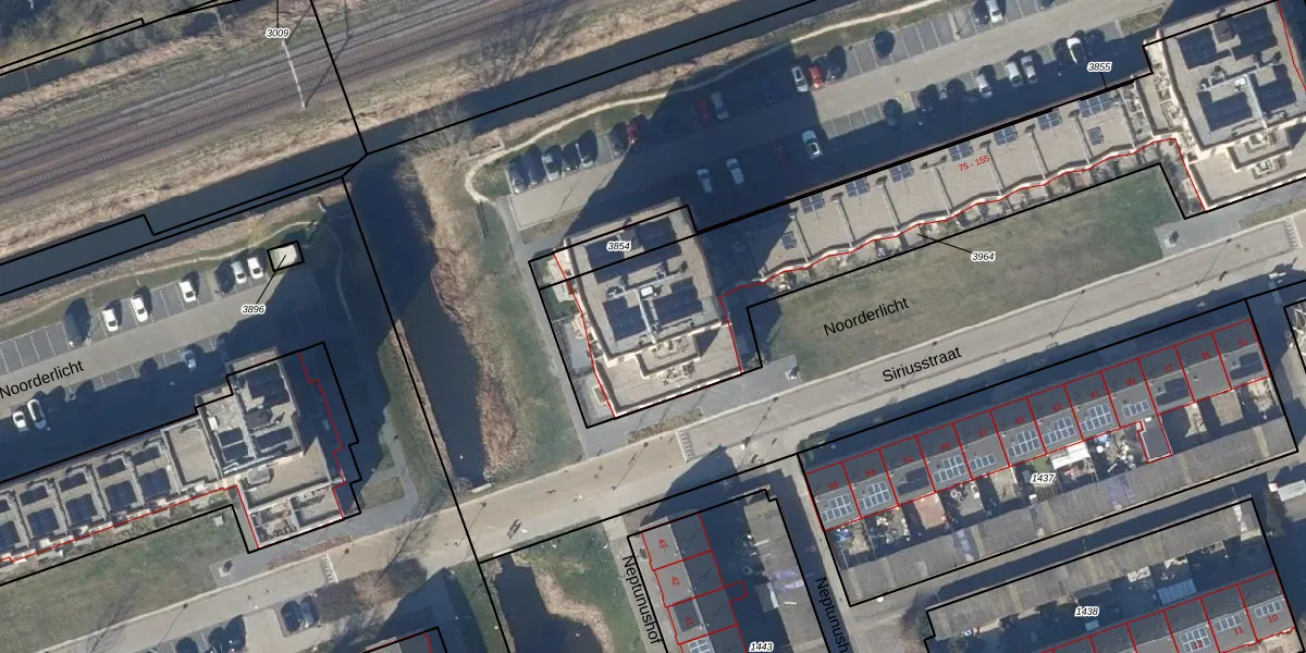 Het perceel waarop Noorderlicht 90 staat heeft een oppervlakte van 2306 m². Dit is een zeer groot perceel. De perceeloppervlakte wordt geregistreerd door het Kadaster. Gedetailleerde informatie over de maten van dit perceel kunt u vinden in het rapport Kadastrale kaart met maatvoering van Noorderlicht 90.