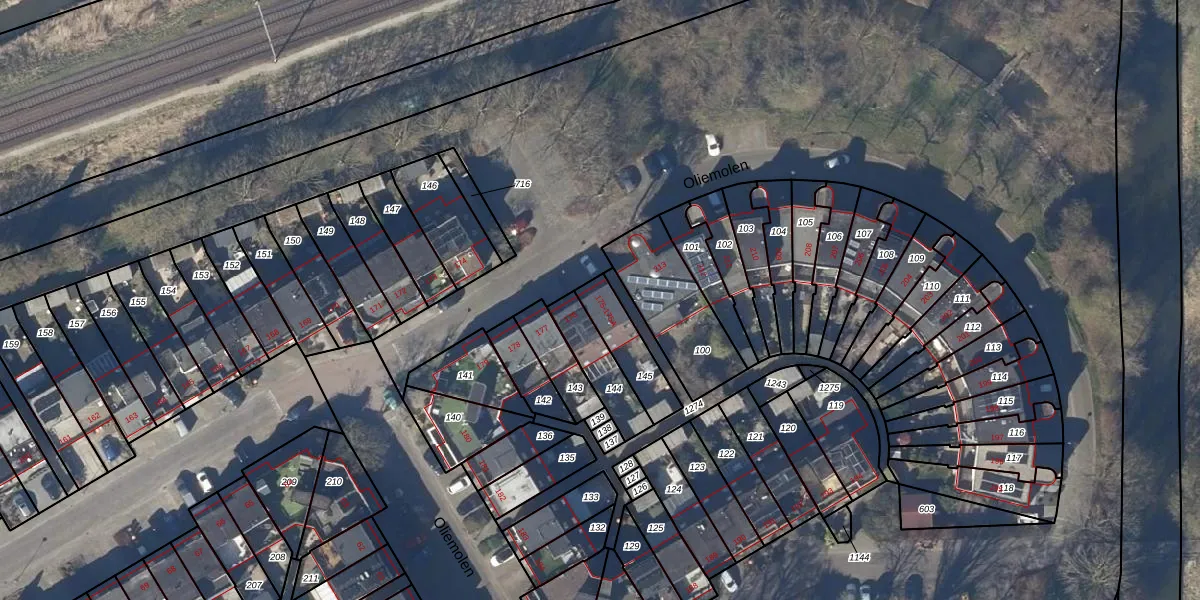 Het perceel waarop Oliemolen 175 staat heeft een oppervlakte van 147 m². Dit is een middelgroot perceel. De perceeloppervlakte wordt geregistreerd door het Kadaster. Gedetailleerde informatie over de maten van dit perceel kunt u vinden in het rapport Kadastrale kaart met maatvoering van Oliemolen 175.