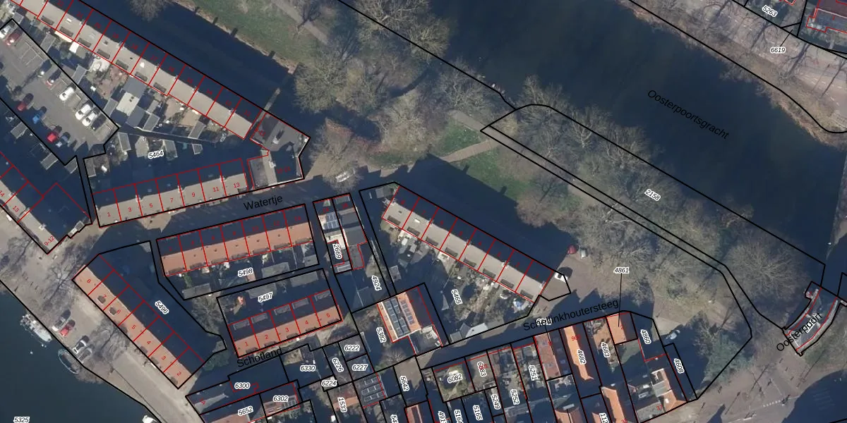 Het perceel waarop Oosterplantsoen 7 staat heeft een oppervlakte van 900 m². Dit is een groot perceel. De perceeloppervlakte wordt geregistreerd door het Kadaster. Gedetailleerde informatie over de maten van dit perceel kunt u vinden in het rapport Kadastrale kaart met maatvoering van Oosterplantsoen 7.