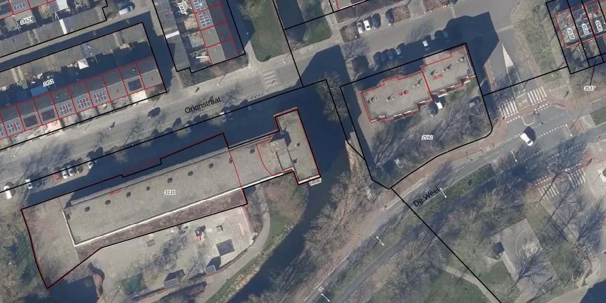 Het perceel waarop Orionstraat 59 staat heeft een oppervlakte van 2061 m². Dit is een zeer groot perceel. De perceeloppervlakte wordt geregistreerd door het Kadaster. Gedetailleerde informatie over de maten van dit perceel kunt u vinden in het rapport Kadastrale kaart met maatvoering van Orionstraat 59.