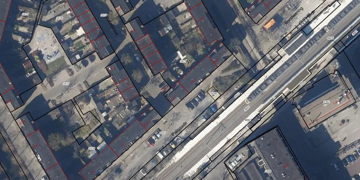 Het perceel waarop Palissade 18 staat heeft een oppervlakte van 1941 m². Dit is een zeer groot perceel. De perceeloppervlakte wordt geregistreerd door het Kadaster. Gedetailleerde informatie over de maten van dit perceel kunt u vinden in het rapport Kadastrale kaart met maatvoering van Palissade 18.