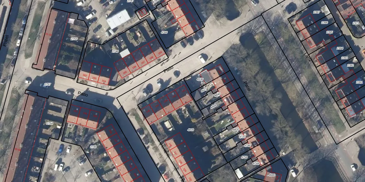 Het perceel waarop Patio 141 staat heeft een oppervlakte van 1707 m². Dit is een zeer groot perceel. De perceeloppervlakte wordt geregistreerd door het Kadaster. Gedetailleerde informatie over de maten van dit perceel kunt u vinden in het rapport Kadastrale kaart met maatvoering van Patio 141.