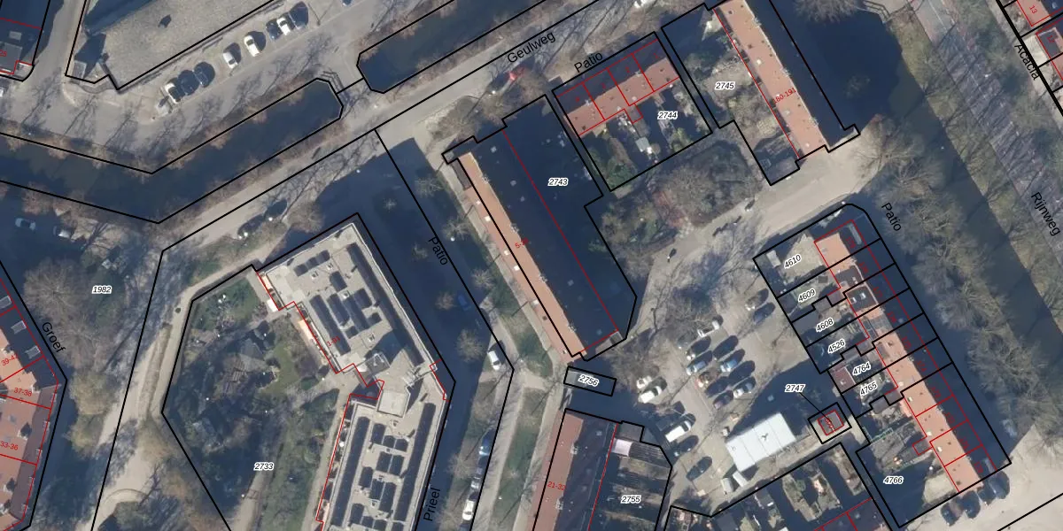 Het perceel waarop Patio 9 staat heeft een oppervlakte van 830 m². Dit is een groot perceel. De perceeloppervlakte wordt geregistreerd door het Kadaster. Gedetailleerde informatie over de maten van dit perceel kunt u vinden in het rapport Kadastrale kaart met maatvoering van Patio 9.