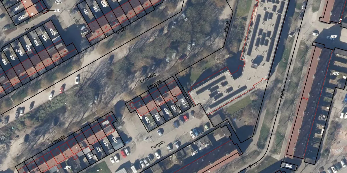 Gebruik de zoekbalk of klik op een perceel voor informatie over de adressen binnen dit perceel.