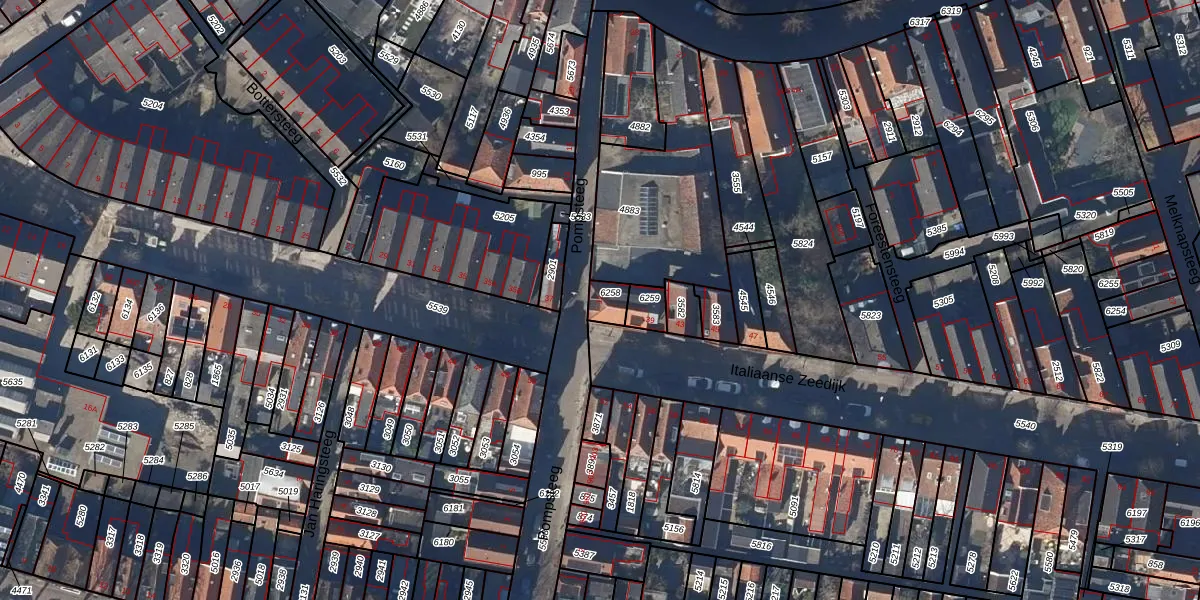 Gebruik de zoekbalk of klik op een perceel voor informatie over de adressen binnen dit perceel.