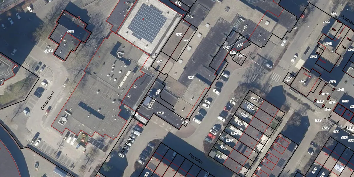 Het perceel waarop Poolster 1-C staat heeft een oppervlakte van 3361 m². Dit is een zeer groot perceel. De perceeloppervlakte wordt geregistreerd door het Kadaster. Gedetailleerde informatie over de maten van dit perceel kunt u vinden in het rapport Kadastrale kaart met maatvoering van Poolster 1-C.