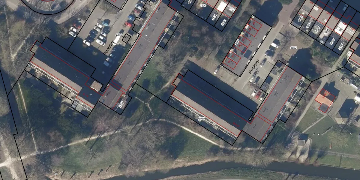 Het perceel waarop Poolster 108 staat heeft een oppervlakte van 1775 m². Dit is een zeer groot perceel. De perceeloppervlakte wordt geregistreerd door het Kadaster. Gedetailleerde informatie over de maten van dit perceel kunt u vinden in het rapport Kadastrale kaart met maatvoering van Poolster 108.