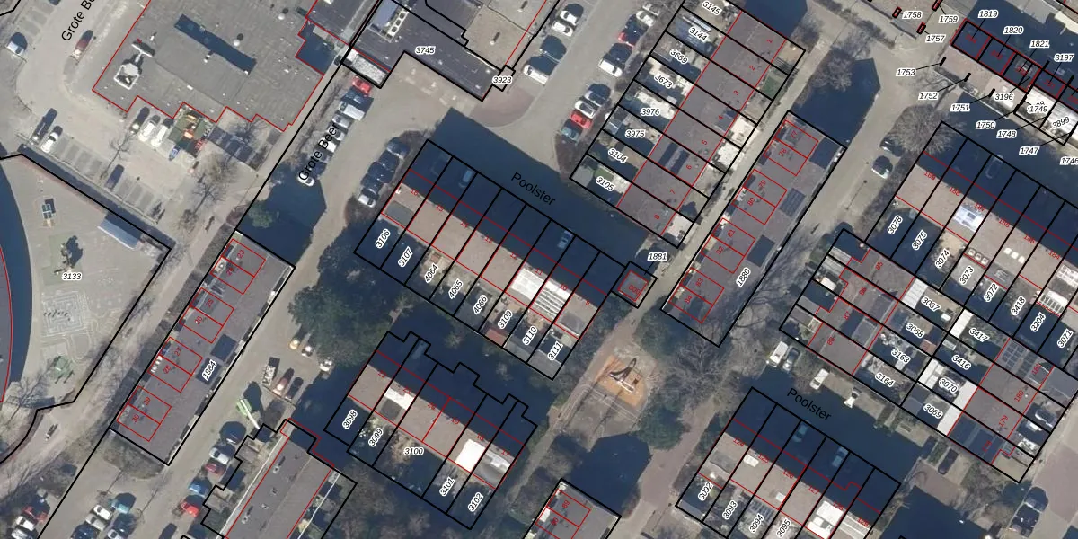 Gebruik de zoekbalk of klik op een perceel voor informatie over de adressen binnen dit perceel.
