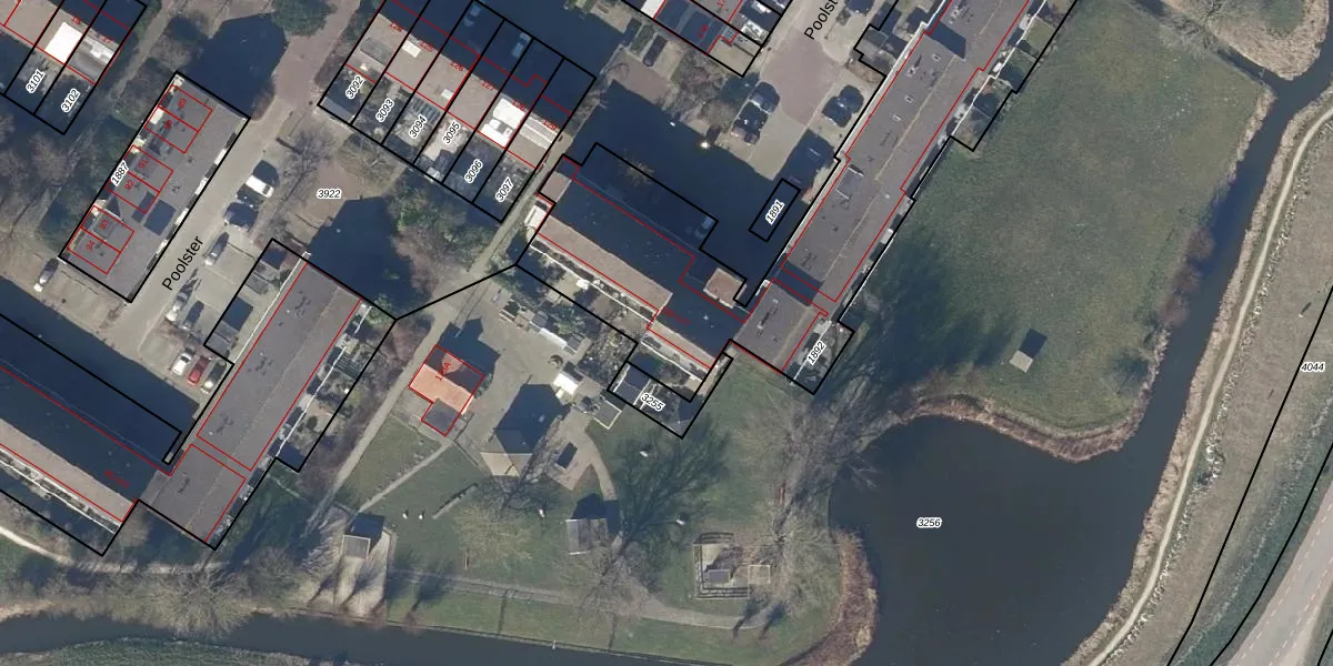 Het perceel waarop Poolster 174 staat heeft een oppervlakte van 2085 m². Dit is een zeer groot perceel. De perceeloppervlakte wordt geregistreerd door het Kadaster. Gedetailleerde informatie over de maten van dit perceel kunt u vinden in het rapport Kadastrale kaart met maatvoering van Poolster 174.