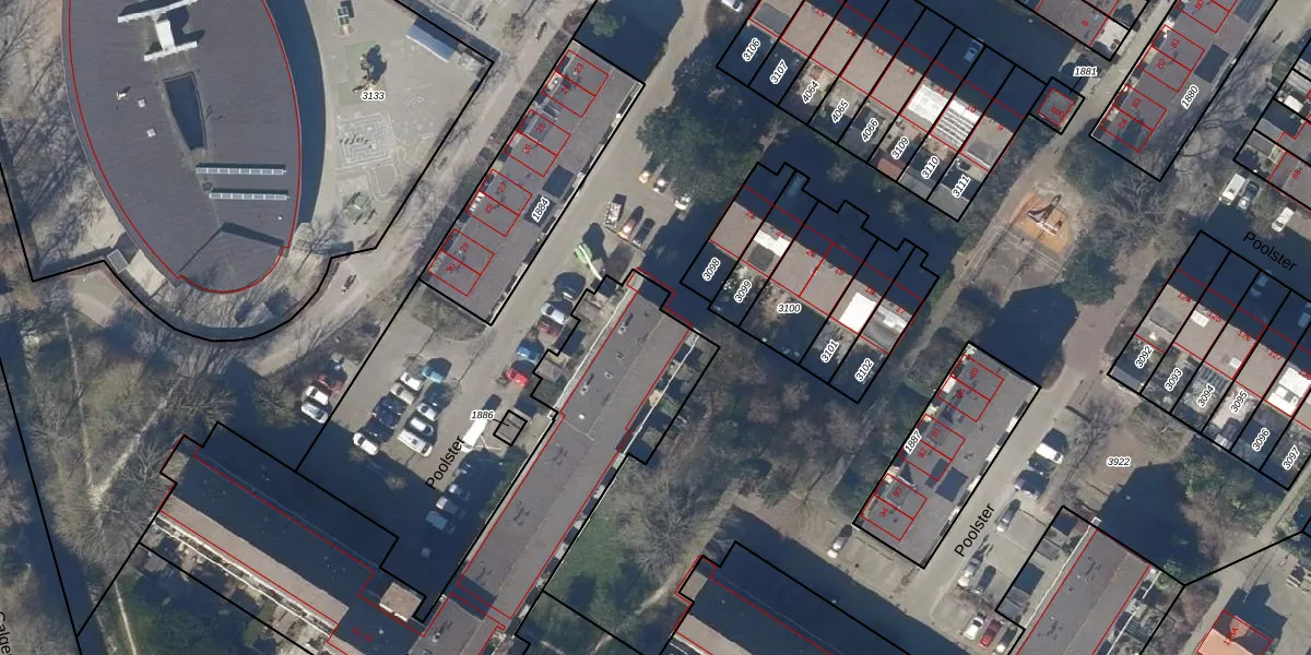 Het perceel waarop Poolster 54 staat heeft een oppervlakte van 2040 m². Dit is een zeer groot perceel. De perceeloppervlakte wordt geregistreerd door het Kadaster. Gedetailleerde informatie over de maten van dit perceel kunt u vinden in het rapport Kadastrale kaart met maatvoering van Poolster 54.