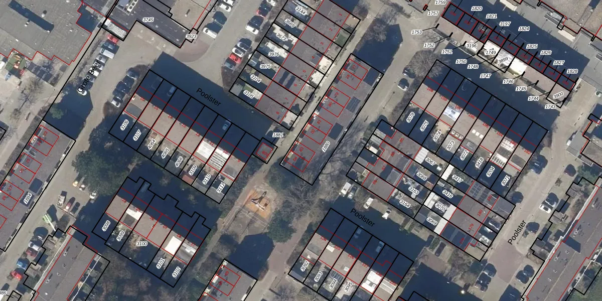 Het perceel waarop Poolster 83 staat heeft een oppervlakte van 565 m². Dit is een groot perceel. De perceeloppervlakte wordt geregistreerd door het Kadaster. Gedetailleerde informatie over de maten van dit perceel kunt u vinden in het rapport Kadastrale kaart met maatvoering van Poolster 83.