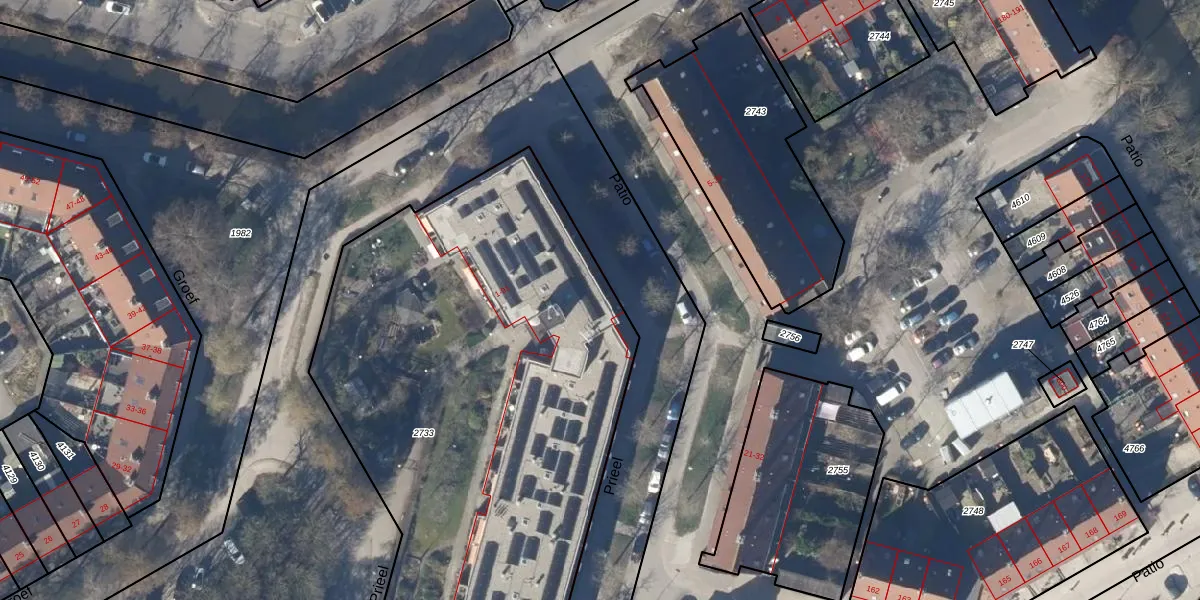 Het perceel waarop Prieel 16 staat heeft een oppervlakte van 5050 m². Dit is een zeer groot perceel. De perceeloppervlakte wordt geregistreerd door het Kadaster. Gedetailleerde informatie over de maten van dit perceel kunt u vinden in het rapport Kadastrale kaart met maatvoering van Prieel 16.