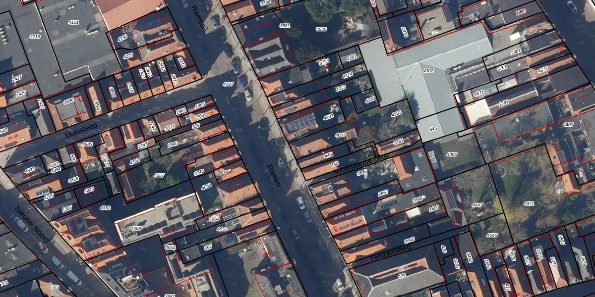 Het perceel waarop Ramen 22 staat heeft een oppervlakte van 364 m². Dit is een groot perceel. De perceeloppervlakte wordt geregistreerd door het Kadaster. Gedetailleerde informatie over de maten van dit perceel kunt u vinden in het rapport Kadastrale kaart met maatvoering van Ramen 22.