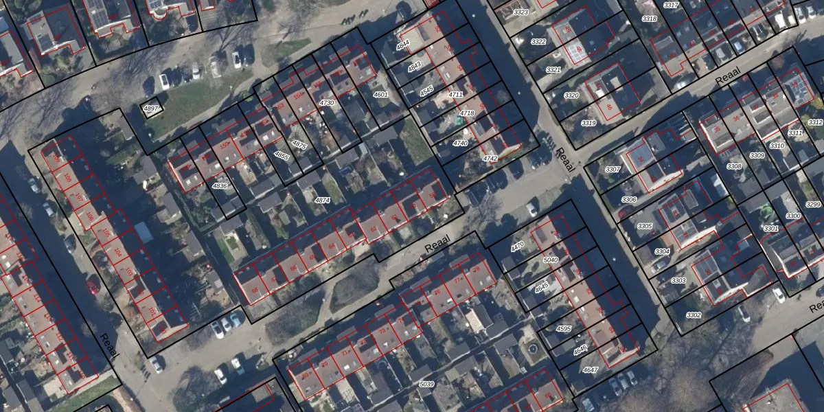 Het perceel waarop Reaal 60 staat heeft een oppervlakte van 3715 m². Dit is een zeer groot perceel. De perceeloppervlakte wordt geregistreerd door het Kadaster. Gedetailleerde informatie over de maten van dit perceel kunt u vinden in het rapport Kadastrale kaart met maatvoering van Reaal 60.