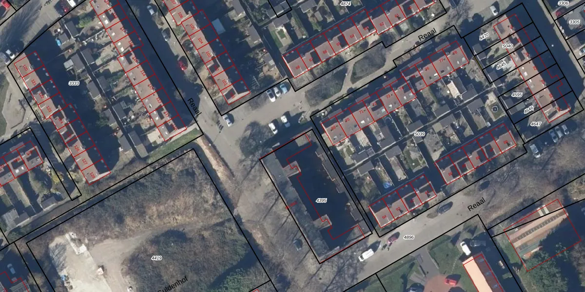 Het perceel waarop Reaal 99-G staat heeft een oppervlakte van 855 m². Dit is een groot perceel. De perceeloppervlakte wordt geregistreerd door het Kadaster. Gedetailleerde informatie over de maten van dit perceel kunt u vinden in het rapport Kadastrale kaart met maatvoering van Reaal 99-G.