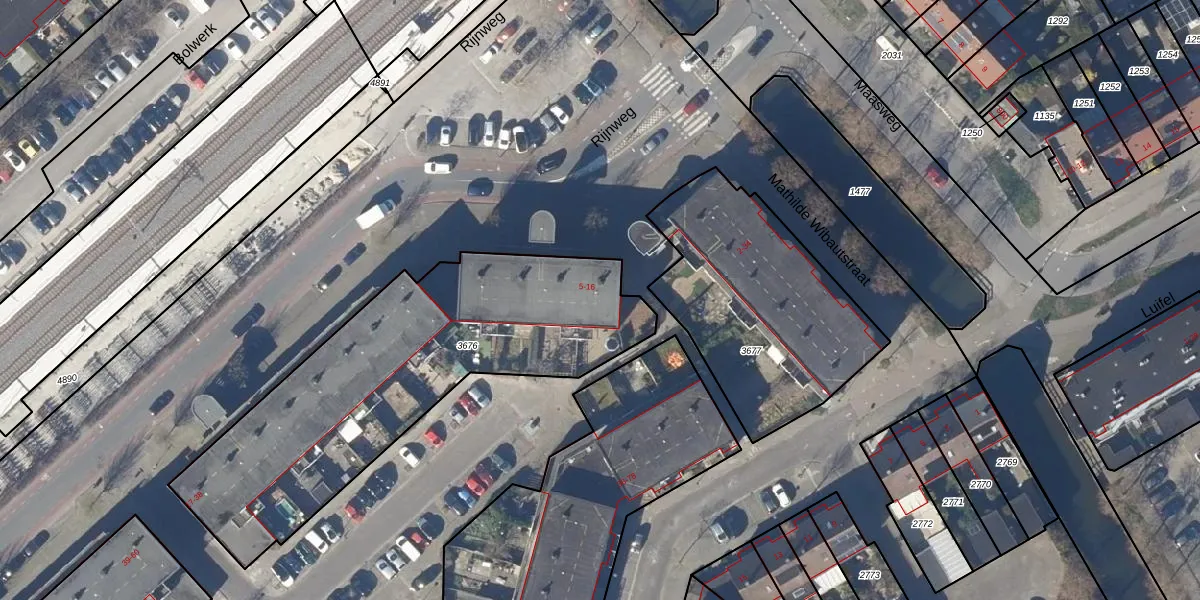 Het perceel waarop Rijnweg 13 staat heeft een oppervlakte van 1655 m². Dit is een zeer groot perceel. De perceeloppervlakte wordt geregistreerd door het Kadaster. Gedetailleerde informatie over de maten van dit perceel kunt u vinden in het rapport Kadastrale kaart met maatvoering van Rijnweg 13.