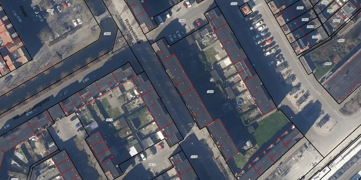 Het perceel waarop Rondeelstraat 34 staat heeft een oppervlakte van 3724 m². Dit is een zeer groot perceel. De perceeloppervlakte wordt geregistreerd door het Kadaster. Gedetailleerde informatie over de maten van dit perceel kunt u vinden in het rapport Kadastrale kaart met maatvoering van Rondeelstraat 34.