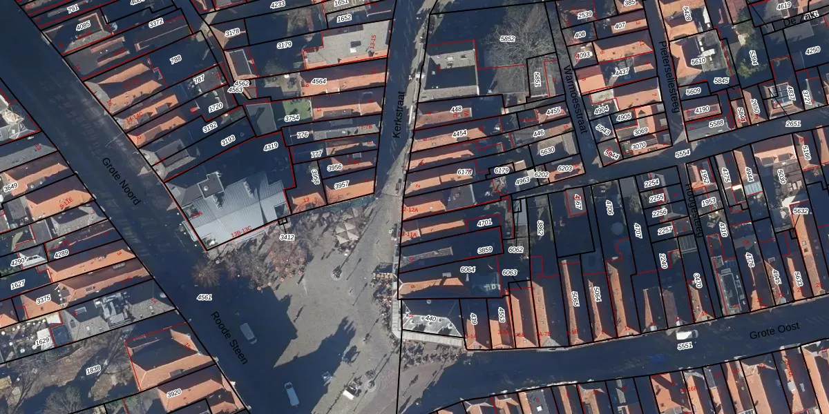 Het perceel waarop Roode Steen 12 staat heeft een oppervlakte van 191 m². Dit is een middelgroot perceel. De perceeloppervlakte wordt geregistreerd door het Kadaster. Gedetailleerde informatie over de maten van dit perceel kunt u vinden in het rapport Kadastrale kaart met maatvoering van Roode Steen 12.