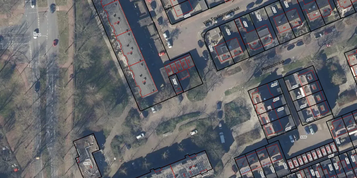 Gebruik de zoekbalk of klik op een perceel voor informatie over de adressen binnen dit perceel.