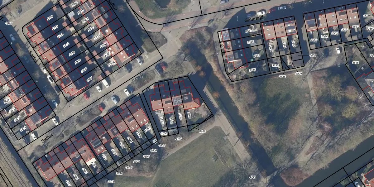Het perceel waarop Saffier 1 staat heeft een oppervlakte van 260 m². Dit is een middelgroot perceel. De perceeloppervlakte wordt geregistreerd door het Kadaster. Gedetailleerde informatie over de maten van dit perceel kunt u vinden in het rapport Kadastrale kaart met maatvoering van Saffier 1.