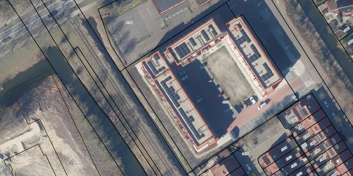Het perceel waarop Saffier 69 staat heeft een oppervlakte van 4959 m². Dit is een zeer groot perceel. De perceeloppervlakte wordt geregistreerd door het Kadaster. Gedetailleerde informatie over de maten van dit perceel kunt u vinden in het rapport Kadastrale kaart met maatvoering van Saffier 69.