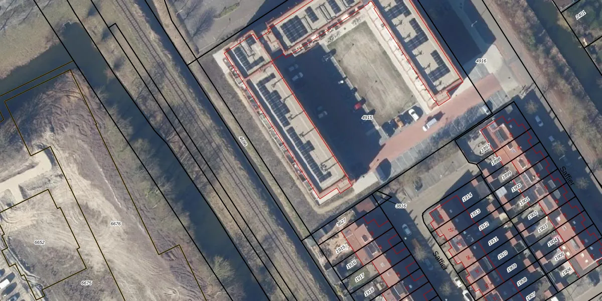 Het perceel waarop Saffier 92 staat heeft een oppervlakte van 4959 m². Dit is een zeer groot perceel. De perceeloppervlakte wordt geregistreerd door het Kadaster. Gedetailleerde informatie over de maten van dit perceel kunt u vinden in het rapport Kadastrale kaart met maatvoering van Saffier 92.