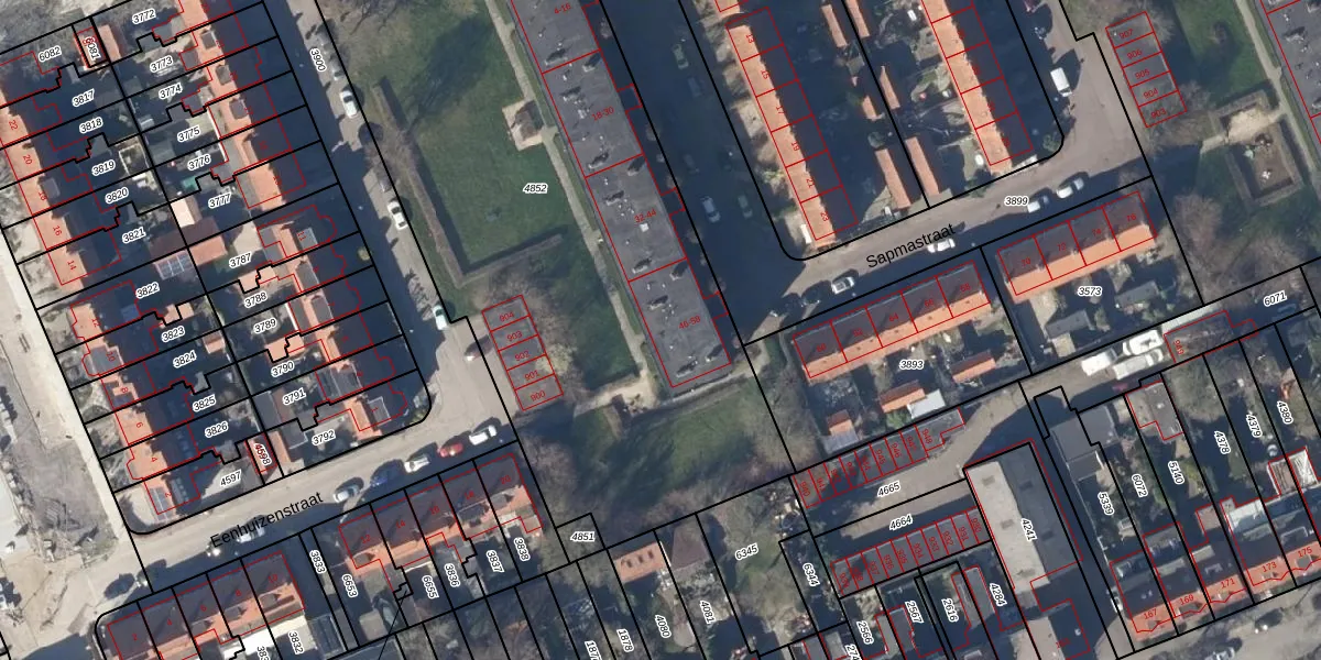 Het perceel waarop Sapmastraat 56 staat heeft een oppervlakte van 4130 m². Dit is een zeer groot perceel. De perceeloppervlakte wordt geregistreerd door het Kadaster. Gedetailleerde informatie over de maten van dit perceel kunt u vinden in het rapport Kadastrale kaart met maatvoering van Sapmastraat 56.