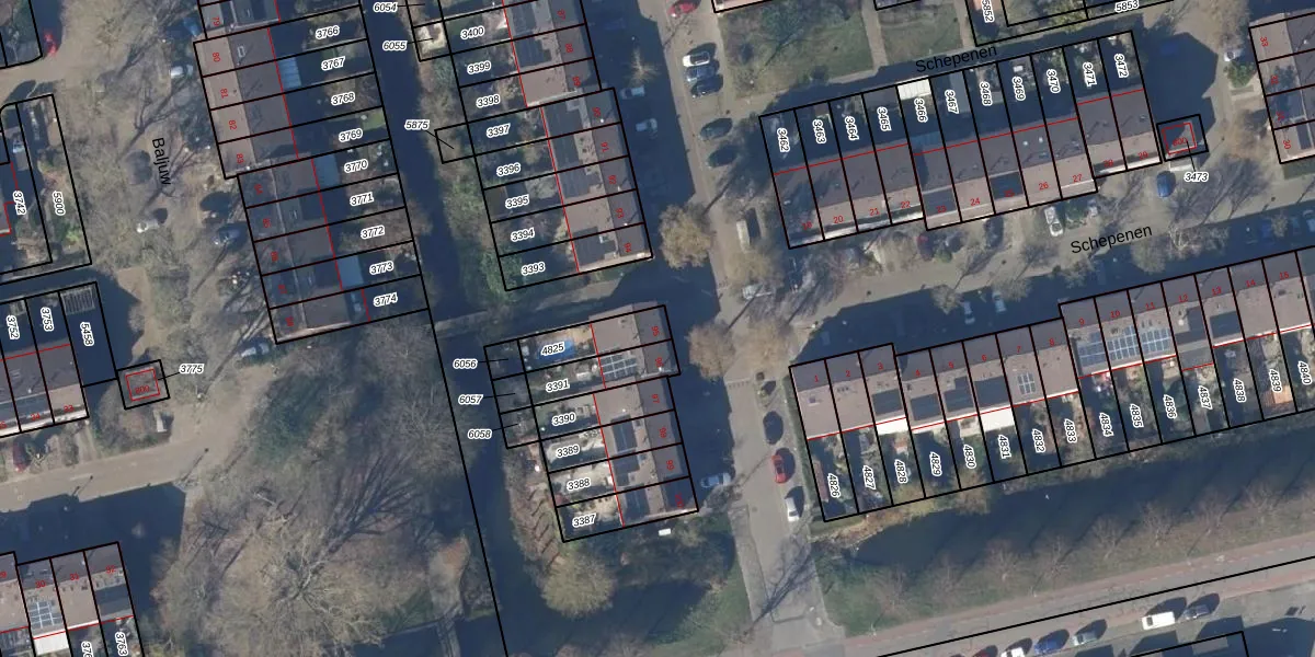 Het perceel waarop Schepenen 95 staat heeft een oppervlakte van 123 m². Dit is een middelgroot perceel. De perceeloppervlakte wordt geregistreerd door het Kadaster. Gedetailleerde informatie over de maten van dit perceel kunt u vinden in het rapport Kadastrale kaart met maatvoering van Schepenen 95.
