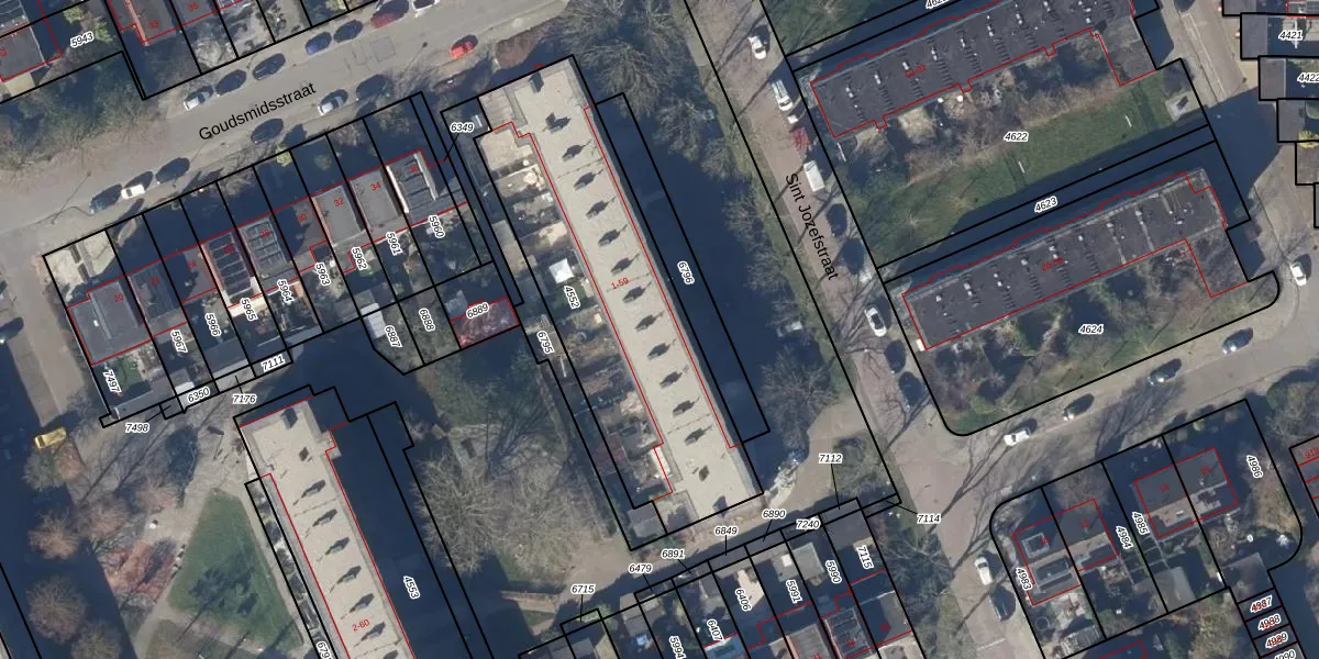 Het perceel waarop Sint Jozefstraat 9 staat heeft een oppervlakte van 1340 m². Dit is een zeer groot perceel. De perceeloppervlakte wordt geregistreerd door het Kadaster. Gedetailleerde informatie over de maten van dit perceel kunt u vinden in het rapport Kadastrale kaart met maatvoering van Sint Jozefstraat 9.
